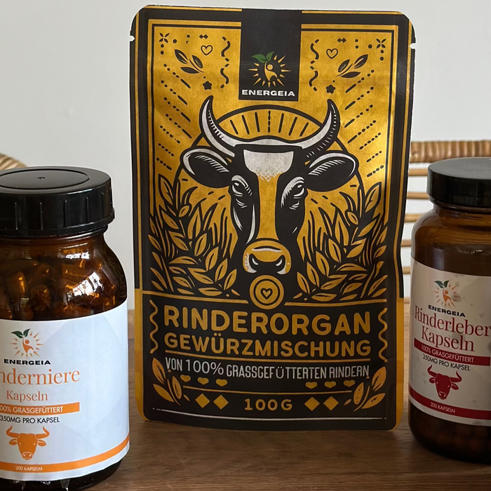 Leberkapseln für alle die zu selten Leber essen, Rinderorgan Gewürzmischung um mehr Nährstoffe in Gerichte zu bekommen, Rinderniere bei Nebennierenschwäche