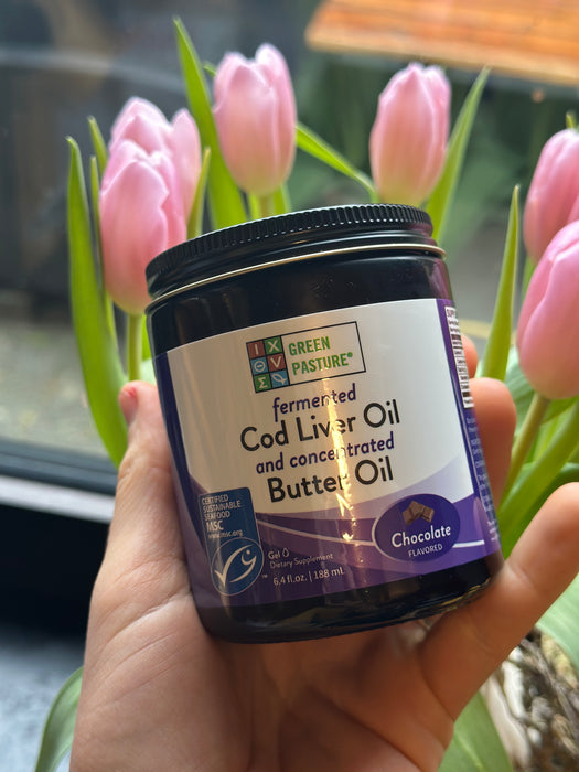 Die besten Lebertrans stellen meiner Meinung nach Green Pasture und Rosita her. Bei Green Pasture mag ich den Puren oder Schoko. Die Mischung mit Vitamin K2 reichem Butteröl wirkt natürlich besonders zahnstärkend.