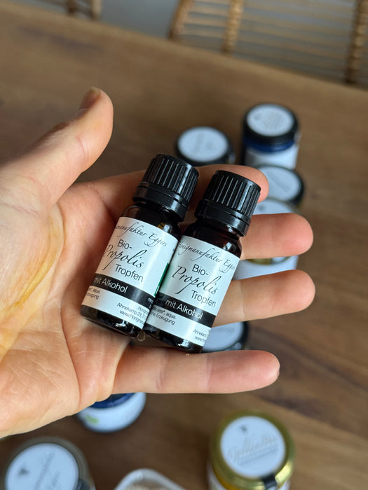 Propolis mit und ohne Alkohol. Wenn möglich empfehle ich den mit Alkohol zu wählen, der Auszug... mehr