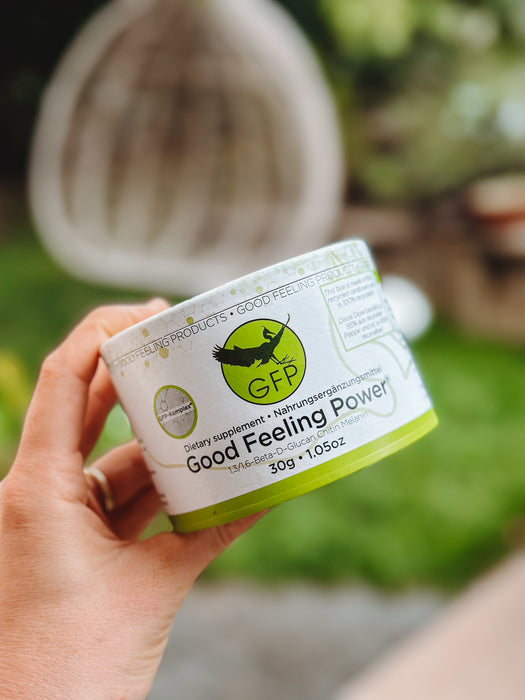 Der GFP Komplex ist eine spezielle Zellwand-Aufbereitung bzw. ein Fraktionieren des Zunderschwamms (Heilpilz). Er reinigt den Darm, ist sehr Balaststoffreich, unterstützt die Entgiftung. Mir hat dieses Produkt geholfen eine langwierige Hautirritation zu beseitigen. Während der Heilung/ Anwendung braucht es 3 Dosen im Monat (eine hält ca. 10 Tage). Täglich sollten 3 leicht gehäufte EL mit jeweils einem Glas Wasser am Tag konsumiert werden (Morgens/Mittags/Abends).