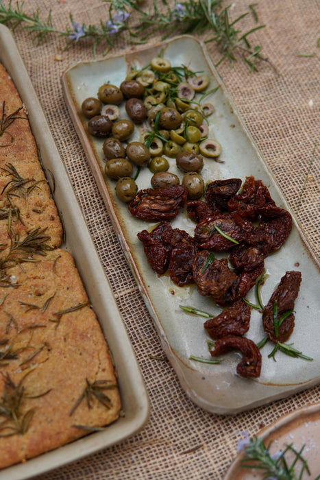 Antipasti, Oliven, eigelegte Tomaten in Olivenöl und natürlich feinstes griechisches Olivenöl.