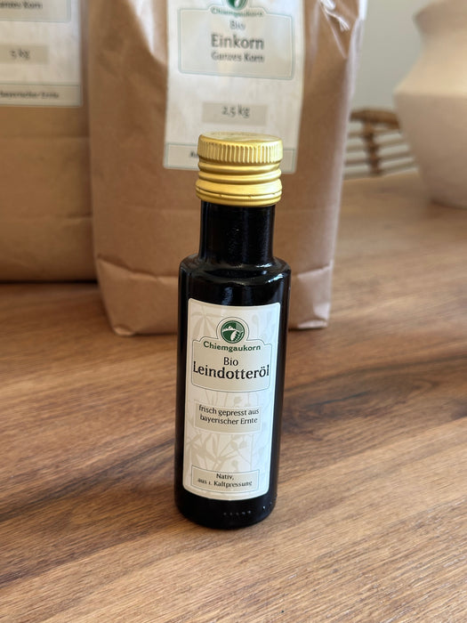 Frisches Leinöl aus Bio-Anbau für Omega-3. Mit einem hohen Anteil an Alpha-Linolensäure. Nativ und kaltgepresst.
